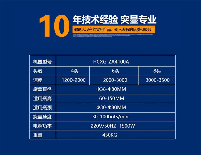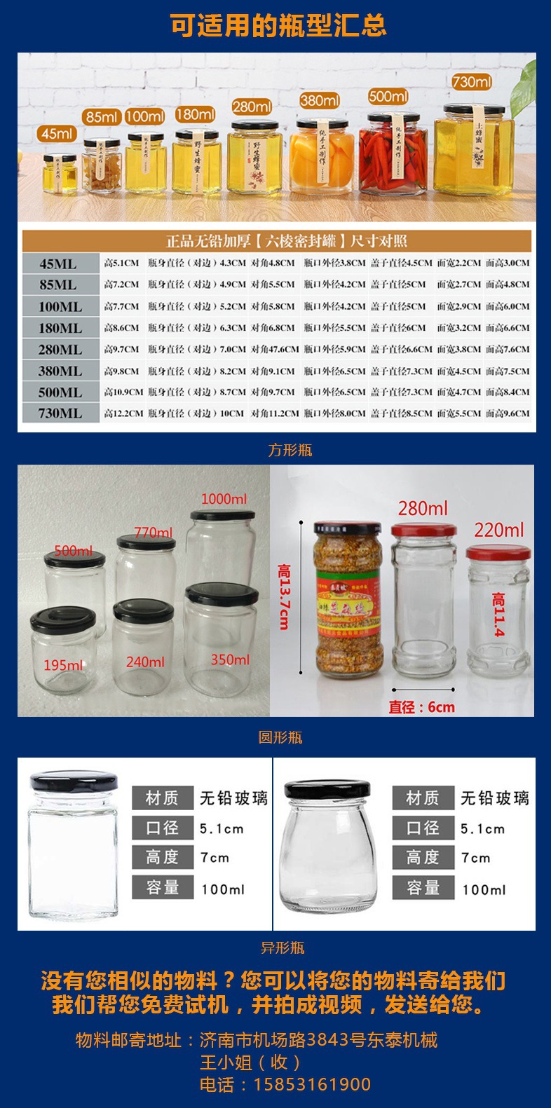 6.旋蓋機(jī)構(gòu)高度可快速調(diào)節(jié),可適用相同口徑、不同高度的瓶子旋蓋;更換部分零件即可實(shí)現(xiàn)不同瓶徑、不同口徑的旋蓋,更換快捷方便。