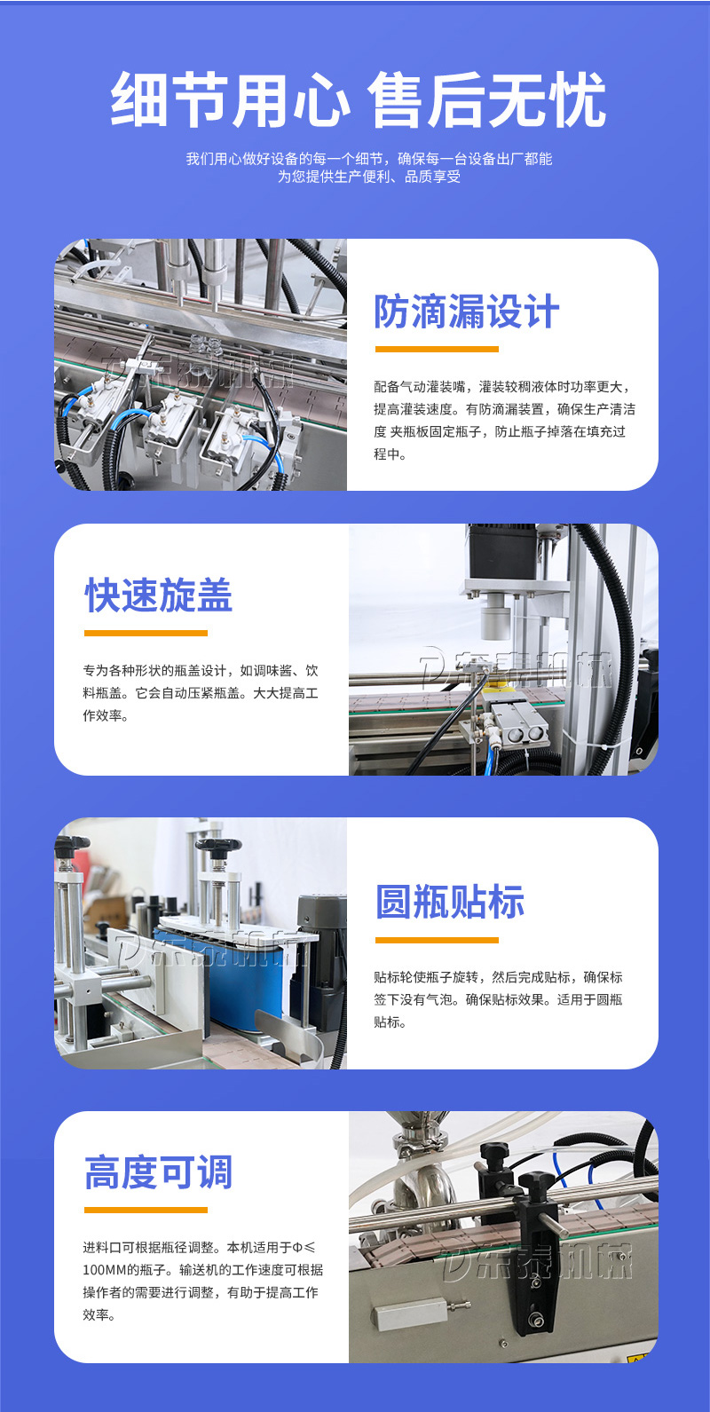 進口可編程控制器PLC和彩色觸摸屏控制,使灌裝機控制系統(tǒng)更加準確可靠??梢源鎯?0多個配方參數。當客戶填充具有不同規(guī)格和密度的材料時,他們可以預設和存儲參數,并可以一鍵切換。
