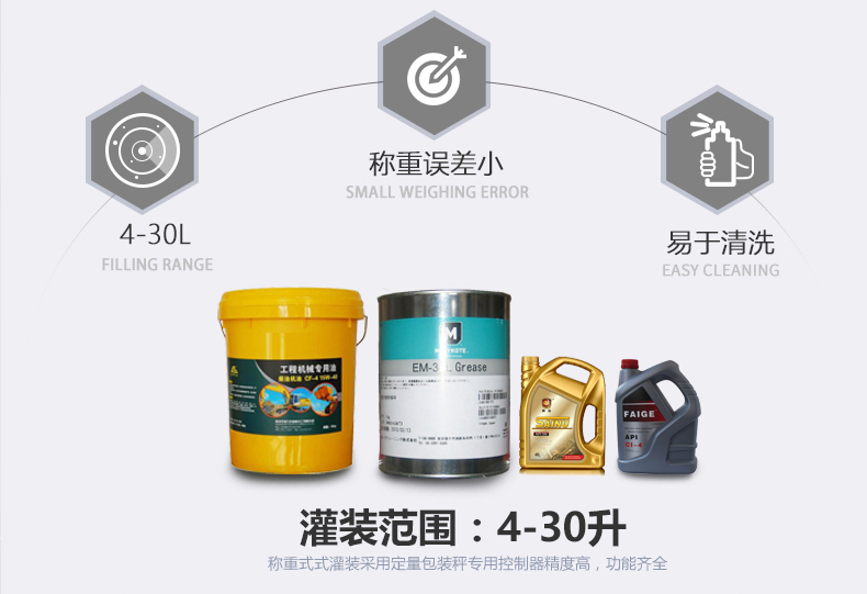 機(jī)油灌裝機(jī)適用于對(duì)4kg-25kg汽車用品類產(chǎn)品:潤(rùn)滑油、防凍液、車用尿素等液體灌裝。自動(dòng)完成計(jì)數(shù)進(jìn)瓶、計(jì)重量灌裝、輸送出瓶等一系列操作。 特別適用于潤(rùn)滑油、水劑、食用油的定量灌裝,是食品,醫(yī)藥,化妝品以及精細(xì)化工等行業(yè)的理想灌裝機(jī)。本機(jī)采用可編程控制器(PLC)、高速工控組態(tài)軟件進(jìn)行實(shí)時(shí)監(jiān)控的控制,使用調(diào)節(jié)方便。整機(jī)按GMP標(biāo)準(zhǔn)要求制作,各管路連接采用快裝方式,拆卸清洗方便,與物料接觸部位及外露部位均采用不銹鋼制造。整機(jī)安全、環(huán)保、安全、美觀、能適應(yīng)各種不同環(huán)境工作。