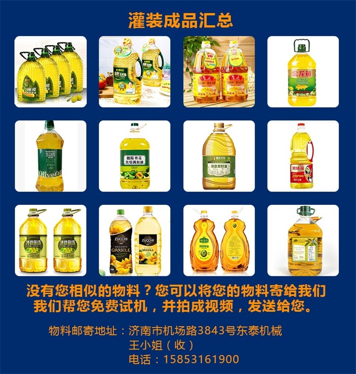 油類的選用是現(xiàn)在人們生活態(tài)度離不開的一種生活態(tài)度,即將來臨寒季油類的的使用將迎來了加強(qiáng)期,市場前景大幅度加強(qiáng),一款食用油灌裝機(jī)的選用會給我們不一樣的新高度。合理的機(jī)器設(shè)備會給廠家提供截然不同的變化的,生產(chǎn)能力的加強(qiáng),加強(qiáng)競爭優(yōu)勢等等自動式十二頭食用油灌裝機(jī)設(shè)備,該型號灌裝機(jī)選用流量計(jì)式計(jì)量灌裝原理,可用于各種規(guī)(1-5升)的南瓜籽油、榛子油、牡丹籽油、芝麻油、山茶油、亞麻籽油、棉籽油、橄欖油、大豆油、玉米油、菜籽油等食用油灌裝,一機(jī)多用,滿足了不同時期的行業(yè)對各種食用油的需求,