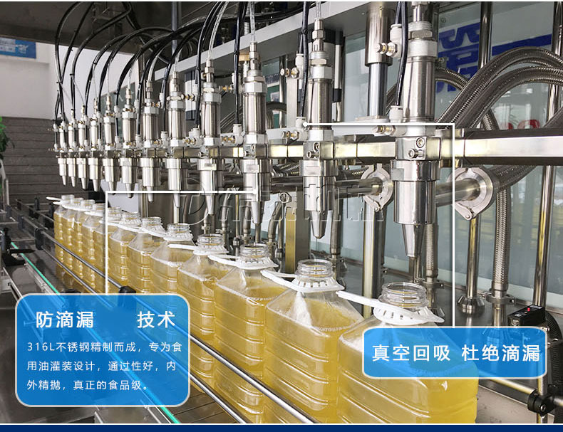 適用于各種規(guī)格(1-5升)的南瓜籽油、榛子油、牡丹籽油、芝麻油、核桃油、山茶油、亞麻籽油、棉籽油、橄欖油、大豆油、玉米油、菜籽油等食用油灌裝。